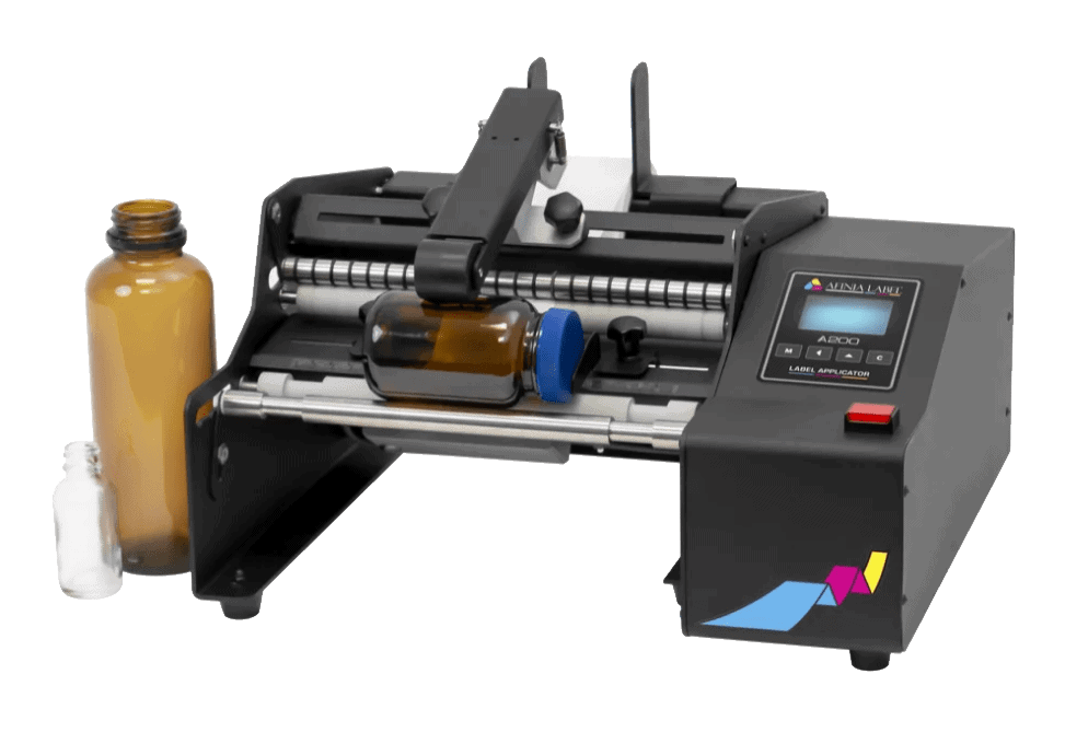 L’A200 est une étiqueteuse semi-automatique conçue pour appliquer des étiquettes sur rouleaux sur des bouteilles, des canettes, des pots et d’autres types de contenants cylindriques. Les étiquettes simples de devant et derrière peuvent être appliquées d’une simple pression sur un bouton ou avec la pédale incluse.
